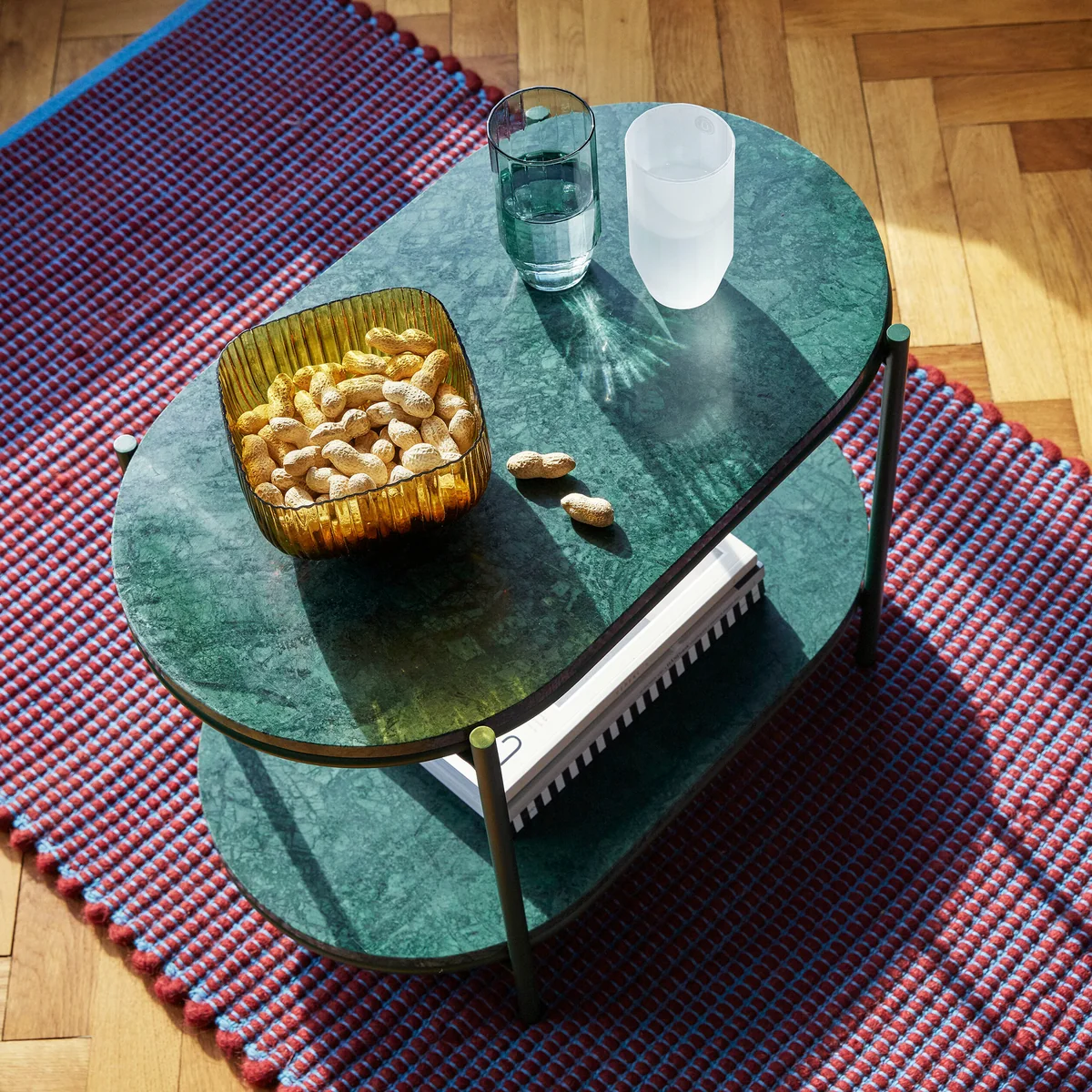 Der Marmor Beistelltisch von Hübsch Interior ist mit seinem minimalistischen Look und der gleichzeitig poppigen Farbe ideal für jedes Ambiente geeignet: Ob im Wohnzimmer, dem Büro oder dem Flur, für Bücher, Magazine oder zum Servieren von Kaffee. Auf den beiden Tischplatten lässt sich sich ebenfalls Deko präsentieren.